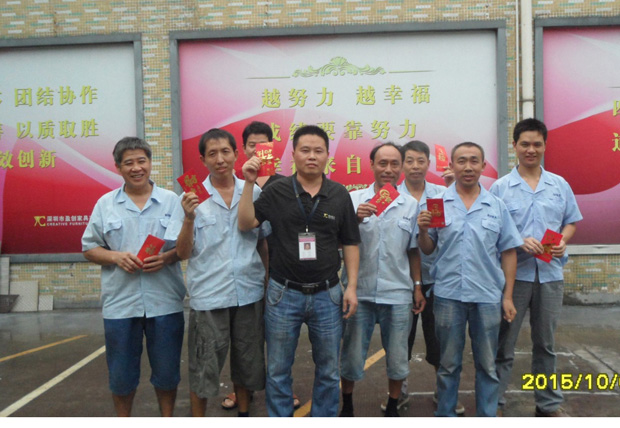 “The good example around, the guiding force to move ahead” was a major feature of the selection highlights. The selected employees were Xiangbukui-the deputy officer-in-charge from Quality Dept.; Chenyangqiu-the carpenter supervisor, Qinxinxiang- the assembly worker, Luoyingquan- the woodworking group leader, Zhangyongsheng and Caoyoujiao- the paint and repair workers—the above five were from Production Dept.; Longzhonghai and Qinjian- the packers from Logistic Dept.; Lijianping- the electrician from Human Resources & Administration Dept..