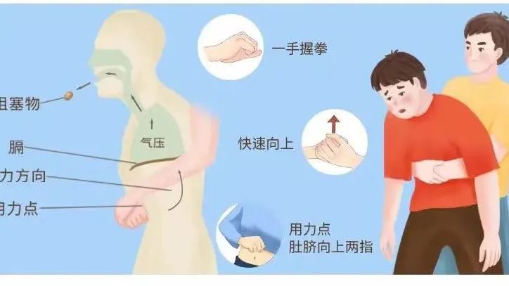 布:另一只手包裹住拳头,对腹部进行一个反复,快速,有力的向内向上的冲击,使突然形成的气流将异物冲出体外。