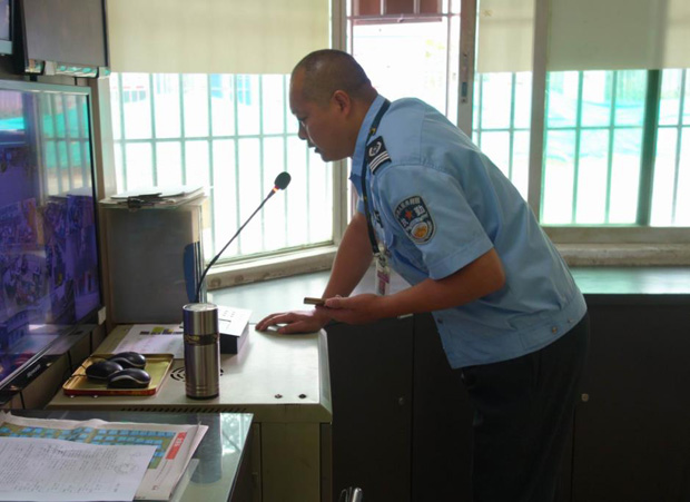 保安队长对全体员工普及安全消防知识及消防器材正确使用